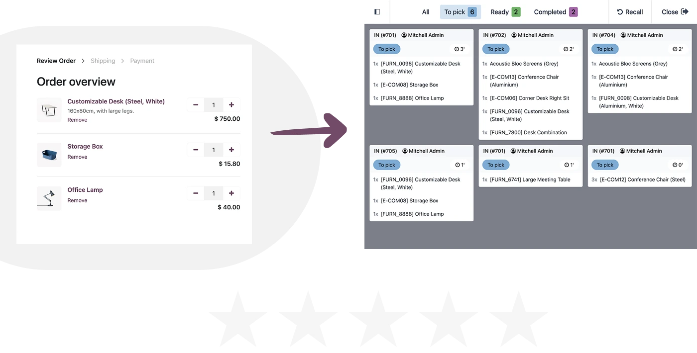 Offer a smooth click-and-collect experience. Eliminate confusion between different sales channels by letting customers place orders online and pick them up in store. Preparation screens help your team organize and prepare large orders ahead of time.